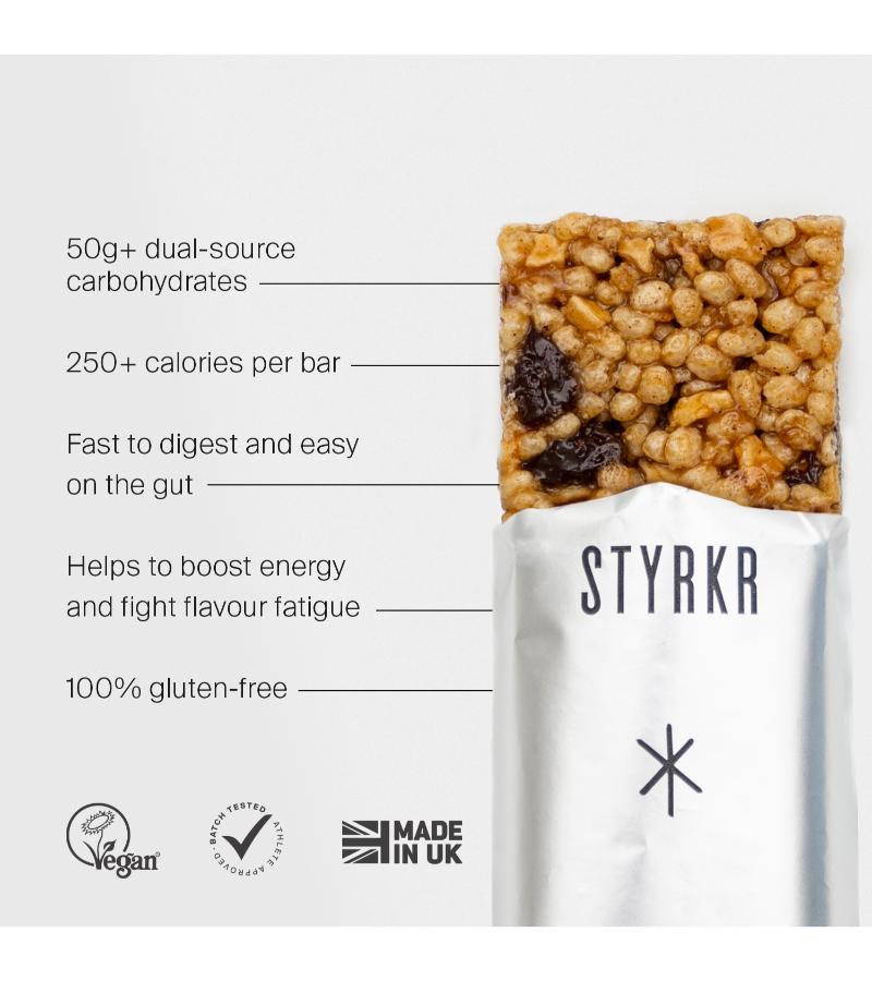 - 50g+ of carbohydrates and 250+ calories per bar.